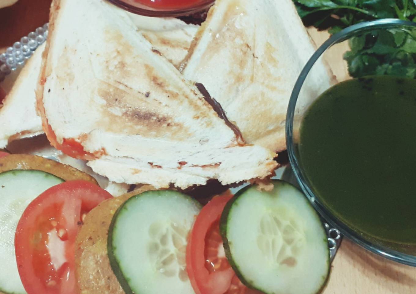 - Transfer the sandwiches on serving plate garnish with tomato and cucumber slices serve with ketchup and chutney.